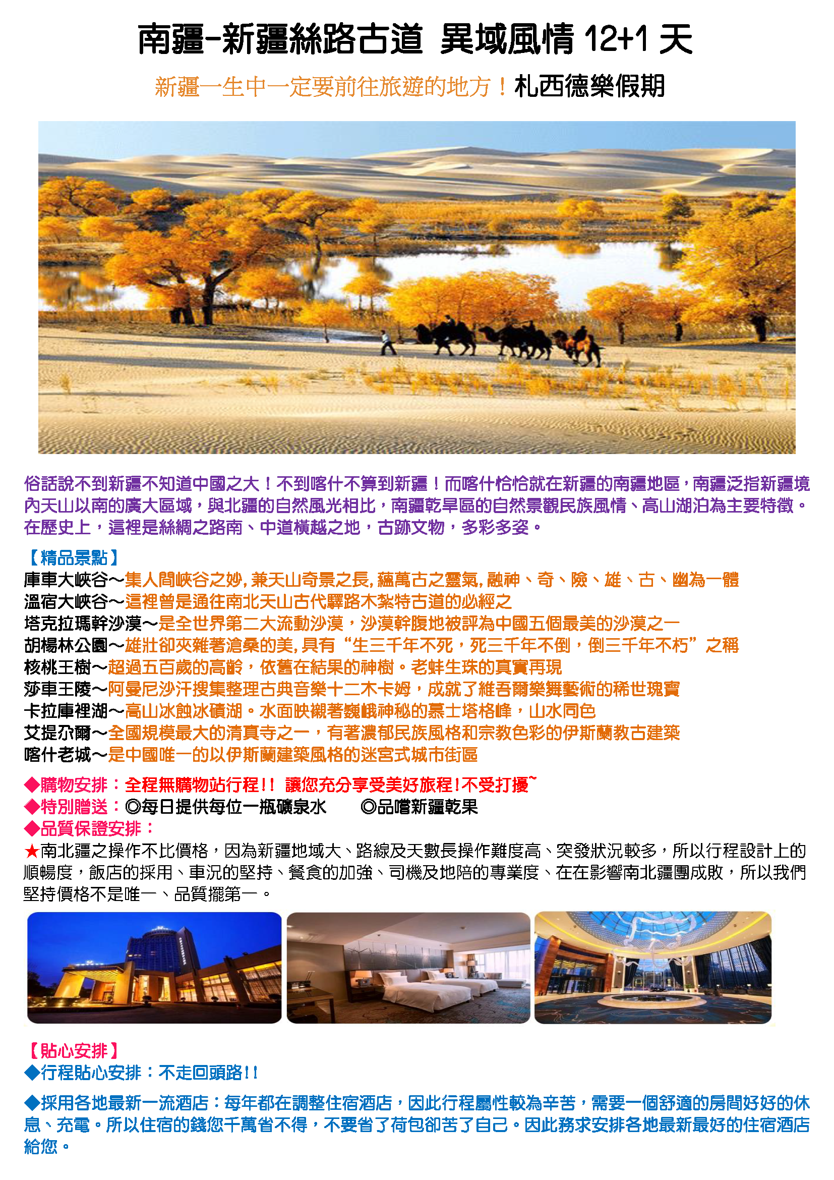 | 2025-10-17 | 2025南疆(新疆絲路古道)13天 原價73900 /早鳥現金優惠中 | MORE |