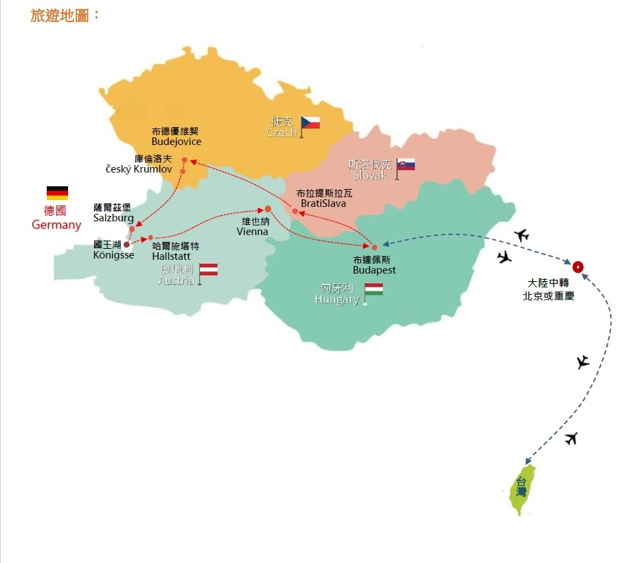 | 2026-02-03 | 巡禮東歐五國~德奧捷斯匈.典藏世界遺產8日 德奧捷斯匈 布達佩斯/薩爾茲堡/熊布朗宮/契斯基.庫倫洛夫/哈爾斯塔特/國王湖 早鳥現金價 | MORE |